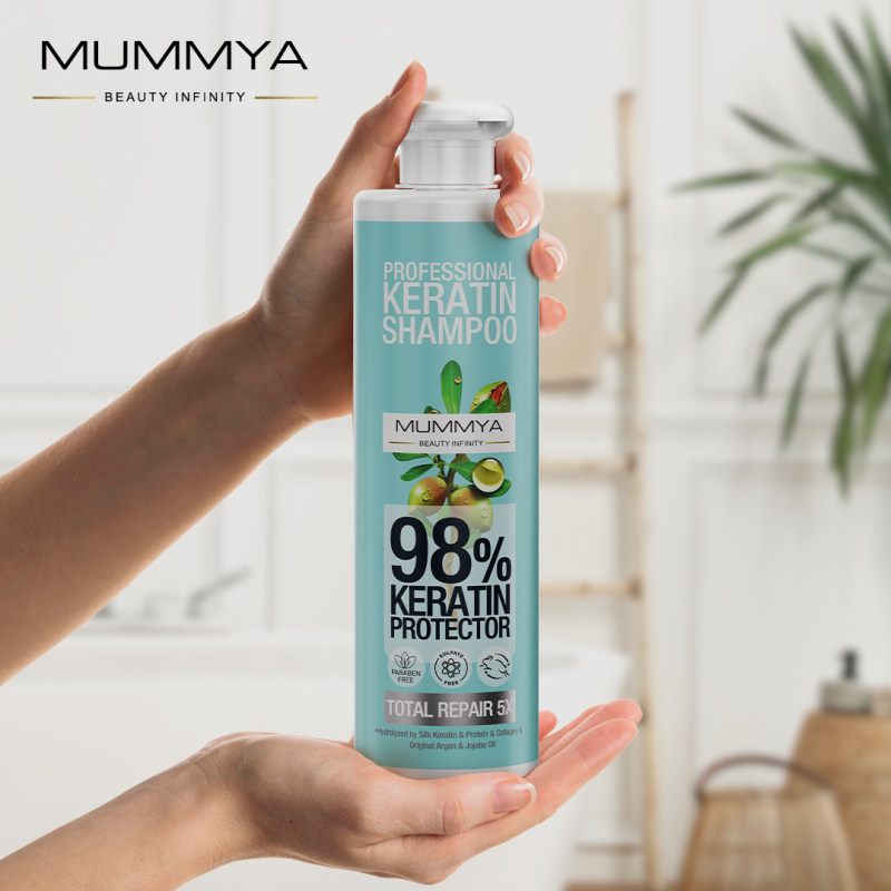 شامپو کراتینه بدون سولفات مومیا بدلیل خواص درمانی و توصیه به مصرف بلند مدت، در حجم بالا به تولید رسیده است تا برای مدت زمان طولالنی پاسخگوی نیاز و استفاده موهای کراتینه باشد. |